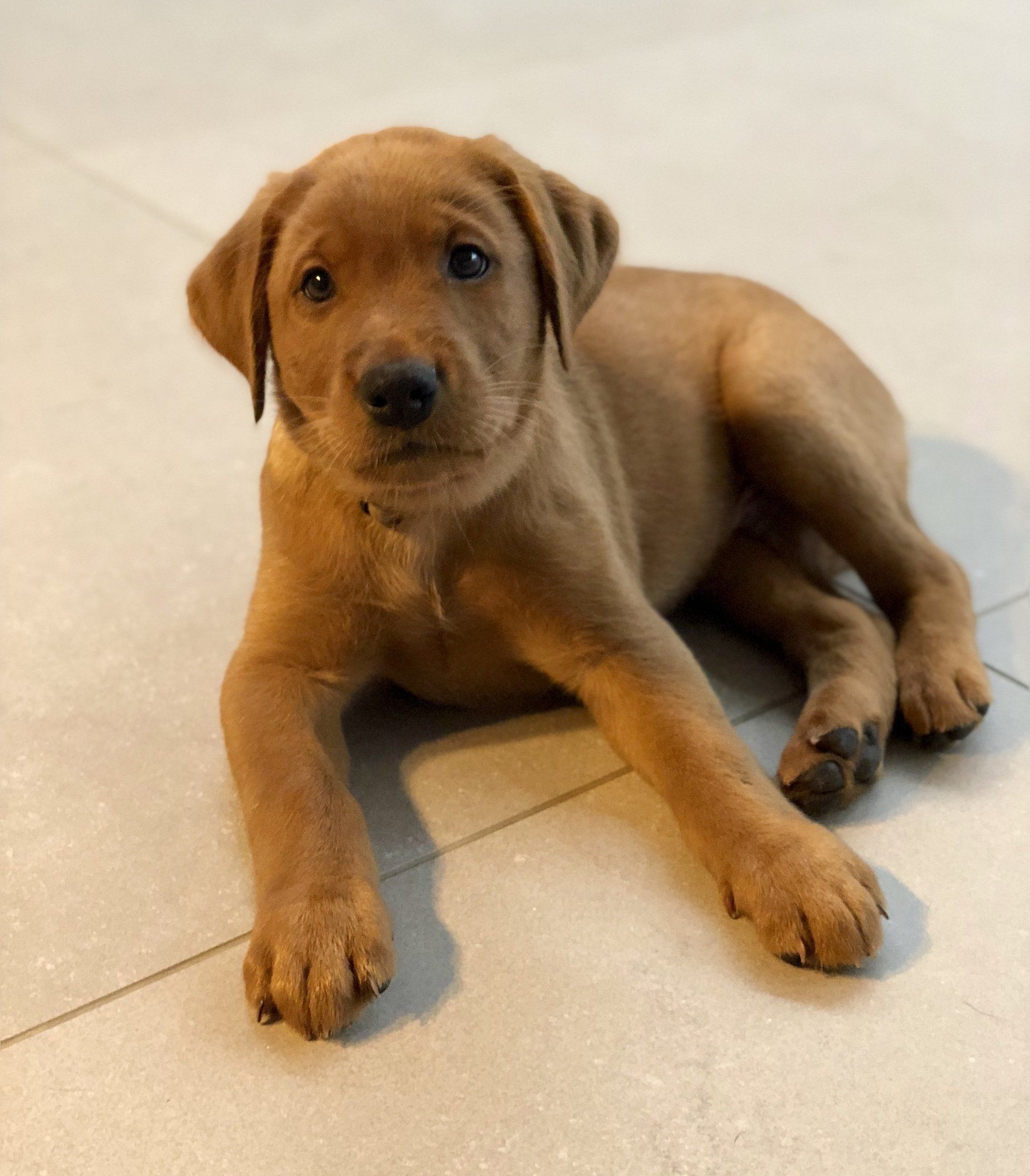 er ist ein ganz verschmuster und sehr erkundungsfreudiger kleiner Welpe. Seine Fellfarbe zeichnet sich als eine der dunkelsten foxred Schattierungen aus diesem Wurf aus.